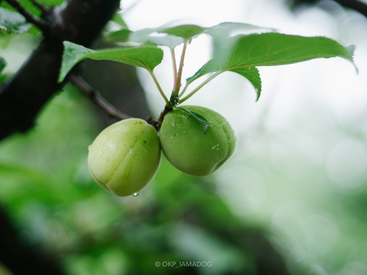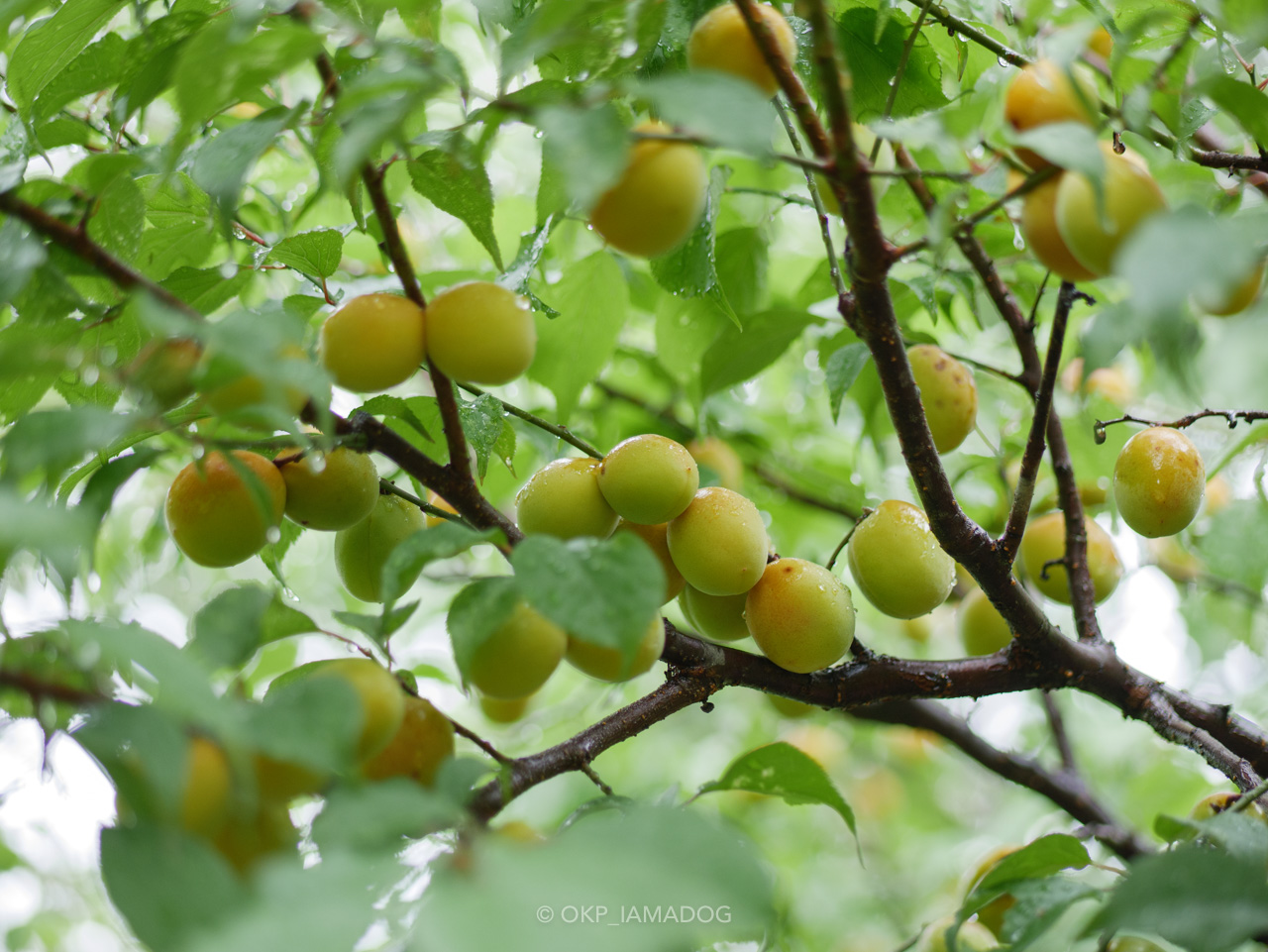 雨に濡れた梅の実もよい。