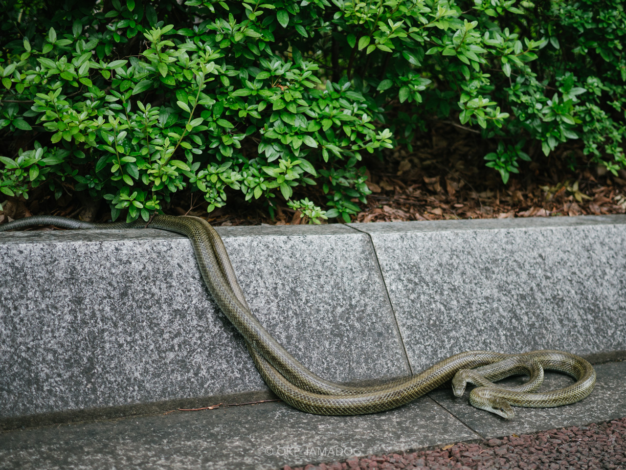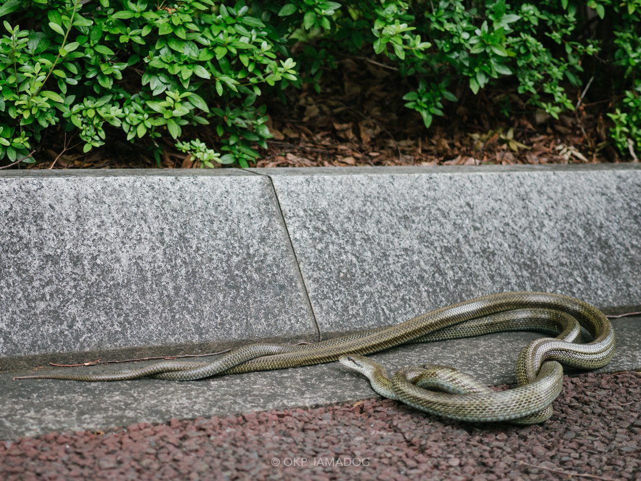 さて、前日の夕方に本館前で見た2匹のアオダイショウ。どちらも1m以上の立派なサイズ。