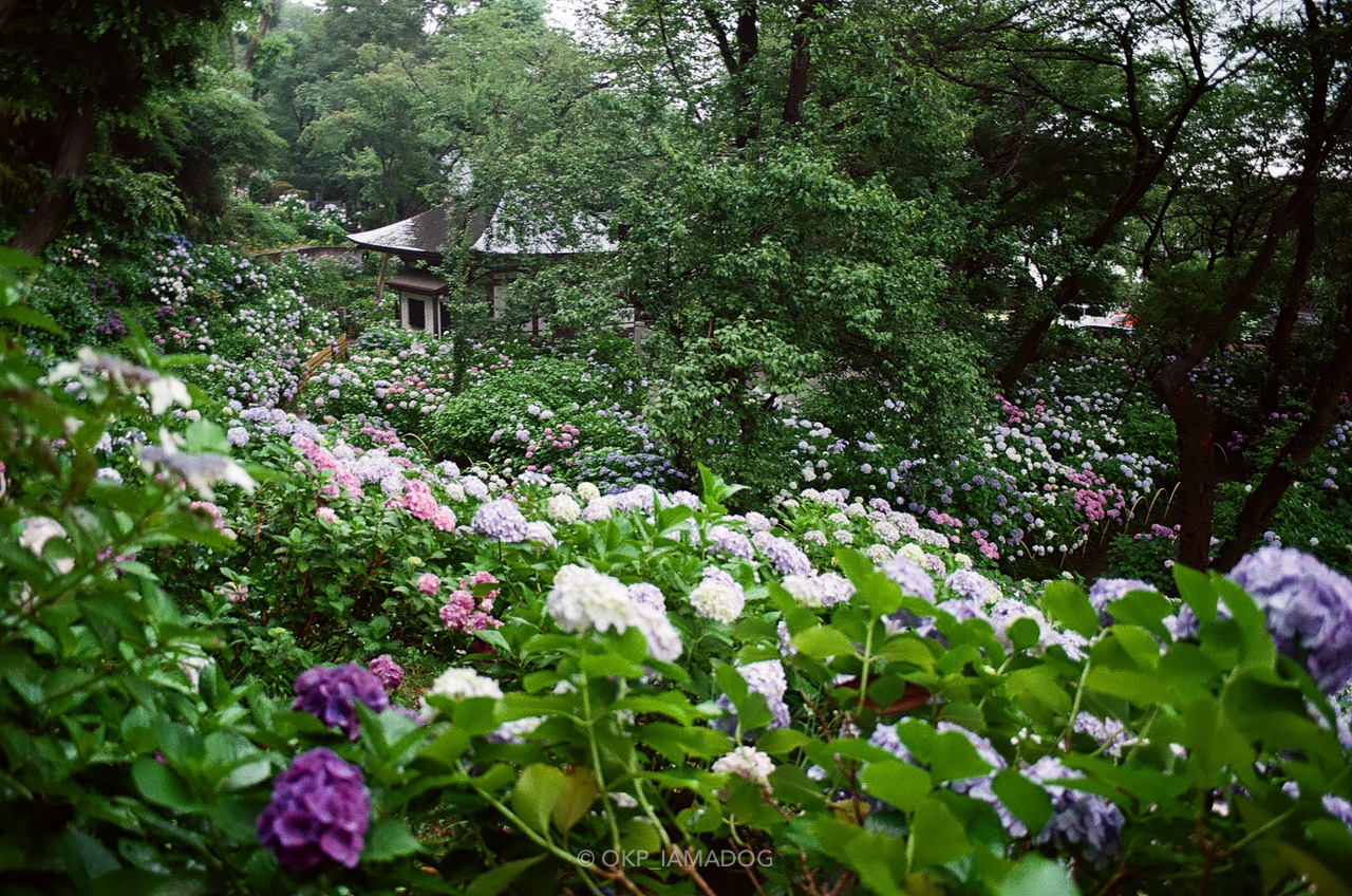 長尾山 妙楽寺。G.ZUIKO AUTO-W 28mm F3.5ですね。斜面一面のアジサイはやはり広角レンズで撮りたい。
