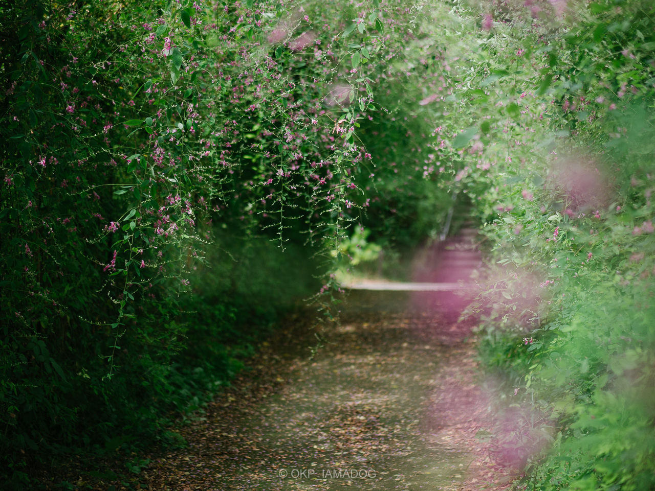 ハギ(萩)のトンネル。今年は例年よりもつるが伸びてワシャワシャしてるかも。
