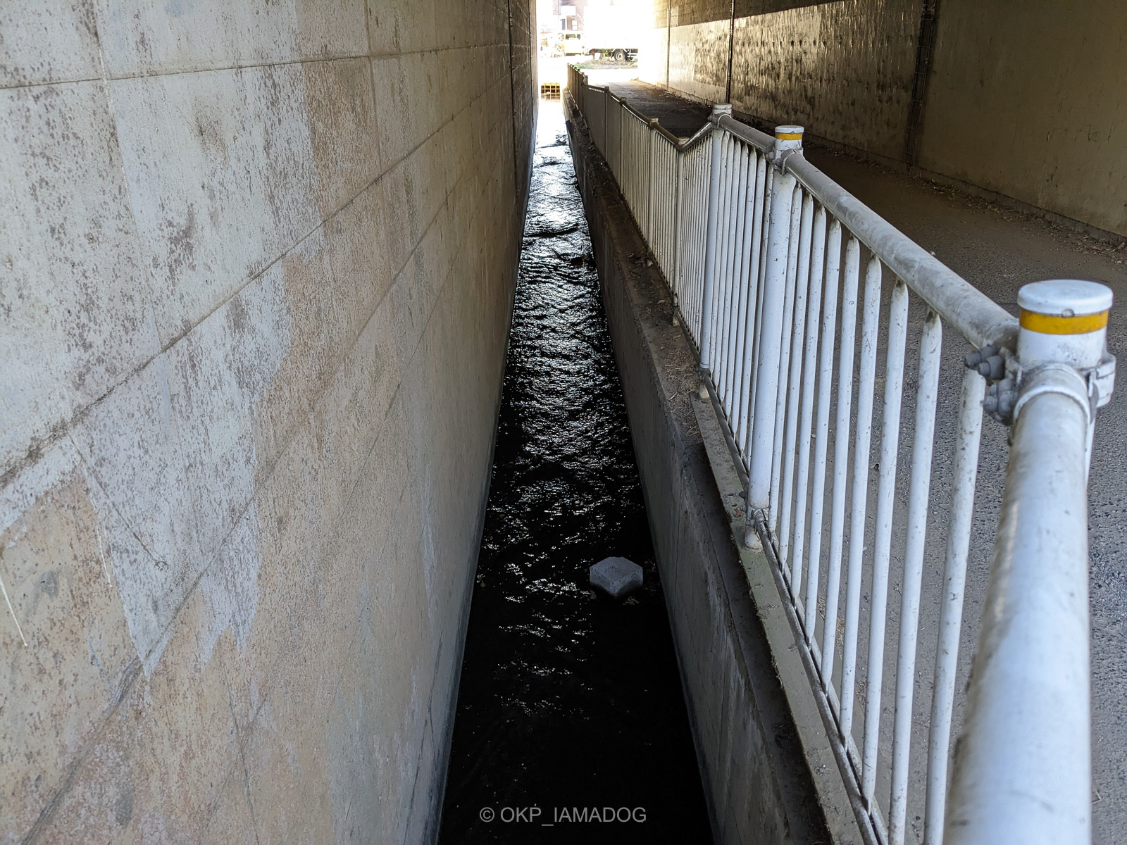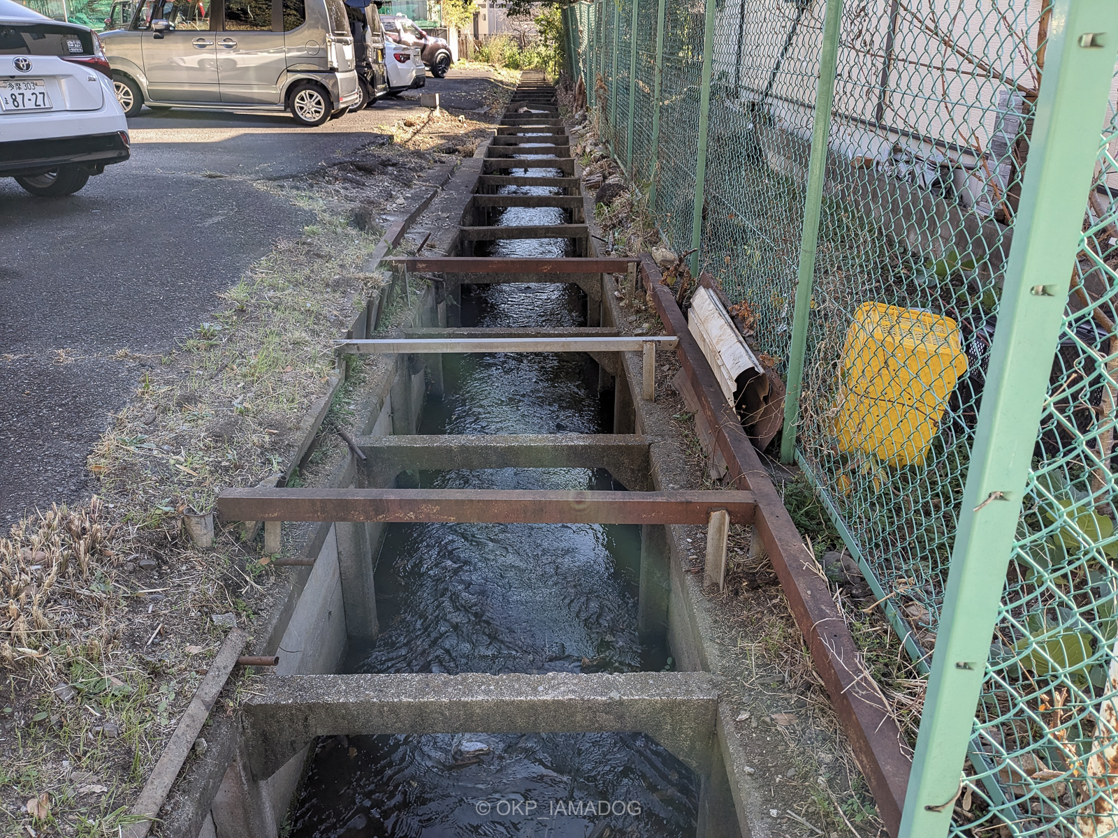 中央道の横から流れてきた水路。恐らく神代植物公園 水生植物園方面からの流れでしょう。住宅地の中をしばらく流れて野川に注ぎ込むようです。