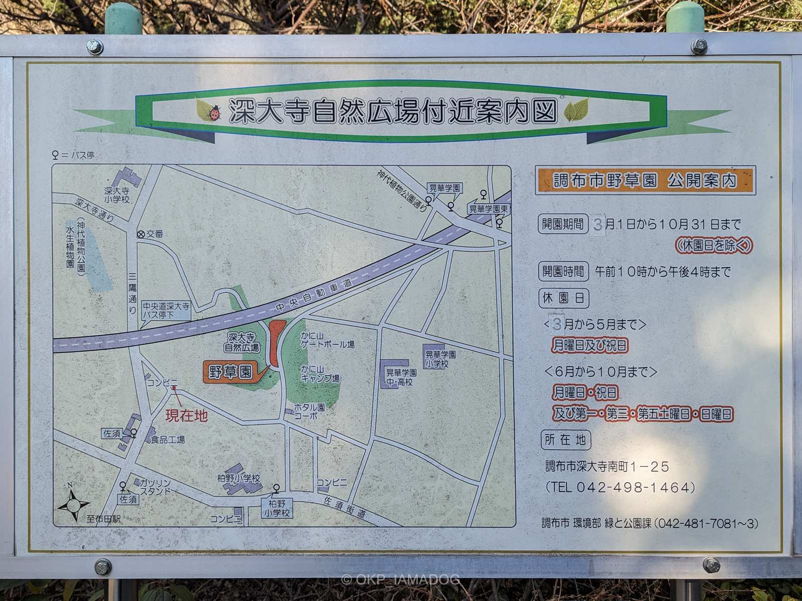 正面のフェンスが調布市立の野草園。11月〜2月は休園だそうです。