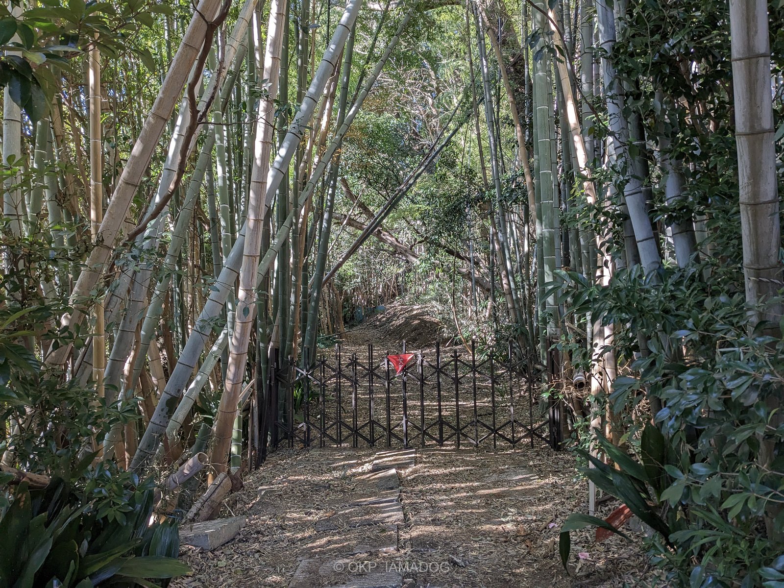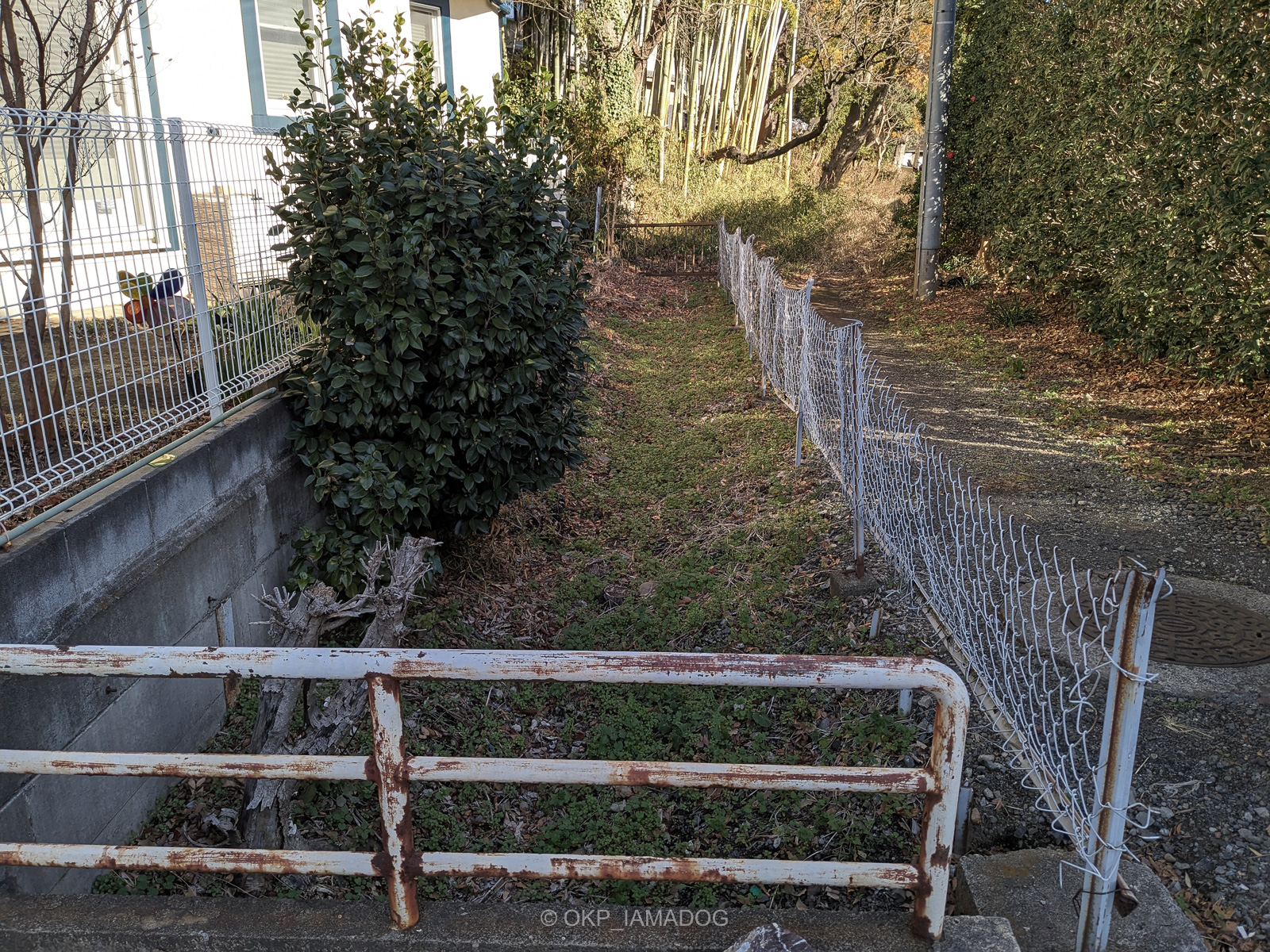 少し戻って住宅地を進んで行くと緑地の中に入る道がありました。下り坂を下りて行くと……