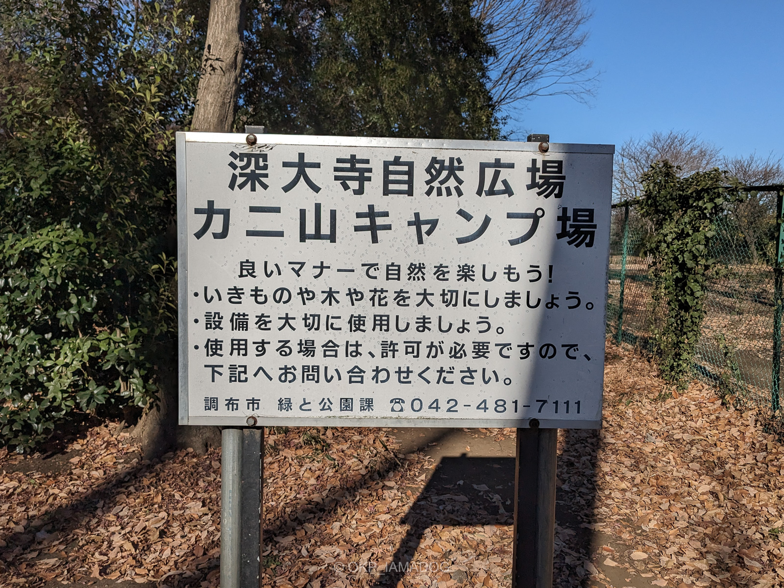 「かに山キャンプ場」に出ました。要予約で調布市在住、在勤、在学の人が利用できる施設だそう。