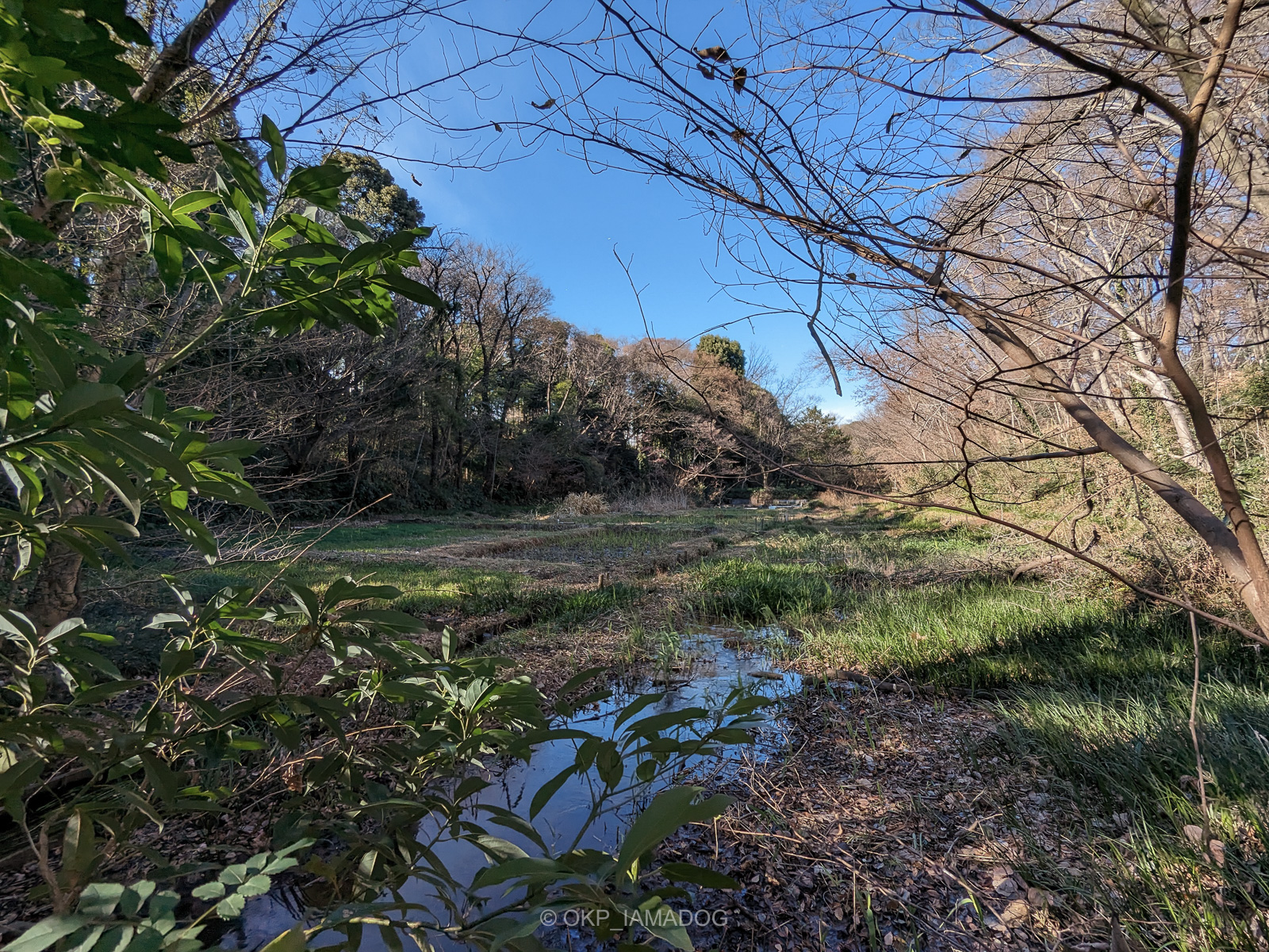 住宅街から突然。里山のような風景が現れました。多摩川流域では府中よりも下流の、(多摩丘陵ではない)左岸側にこんな景色がまだ残っているのですね。