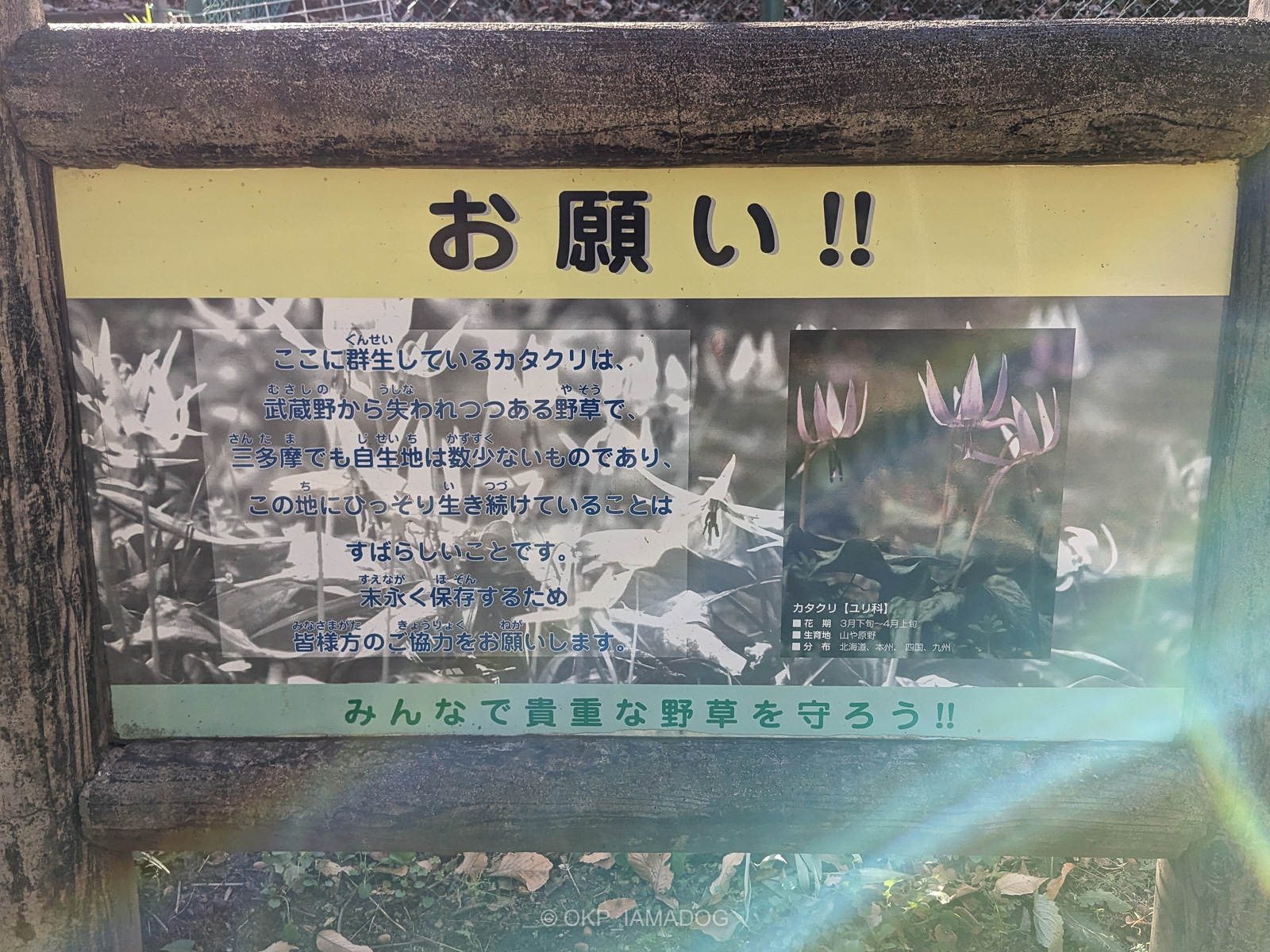 このあたり、カタクリの群生地になっているそう。奥多摩まで行かなくても見られるんですね。
