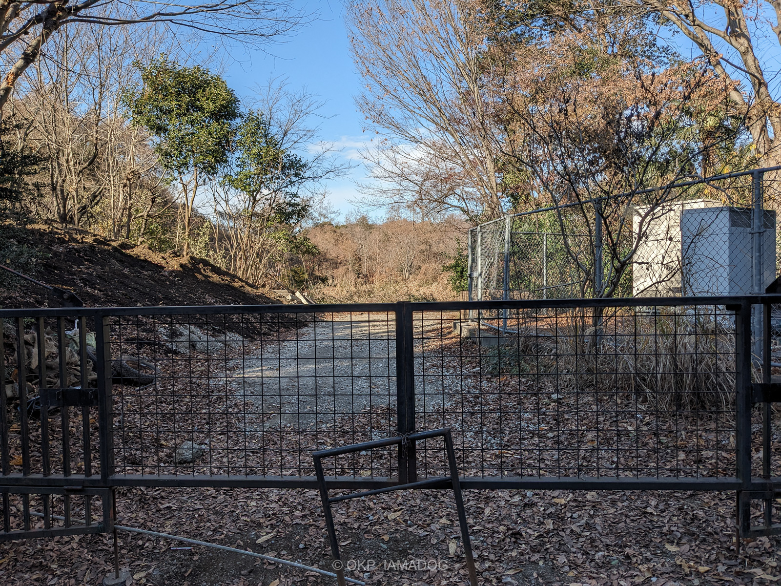 水生植物園の正門とは反対側。こちらからの出入りはできません。左手の丘が深大寺城跡。