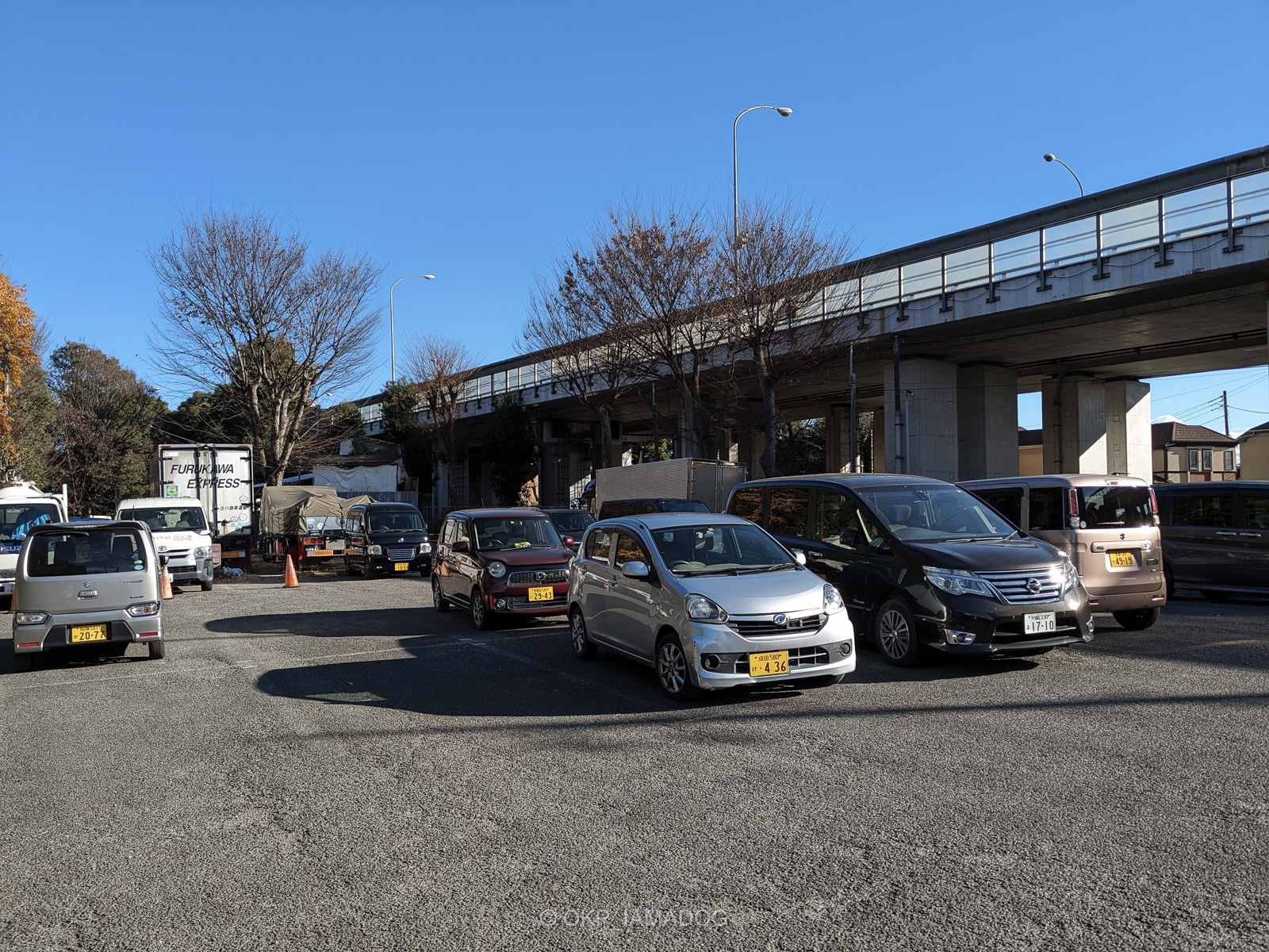 深大寺天然温泉 湯守の里の駐車場に出ました。すぐに入浴したいところですが、タオルなどは車まで行かないとありません。