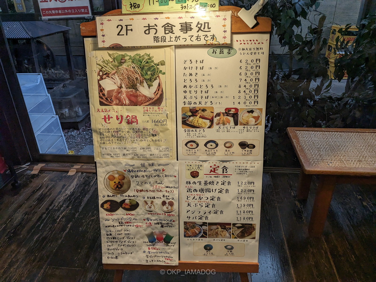 価格設定は稲城の季乃彩や国立の湯楽の里と同じぐらいですが、21時以降、閉店22時までのラスト1時間にナイトカラスコース(600円)が設定されているのが面白いですね。近隣の人が結構利用してそう?