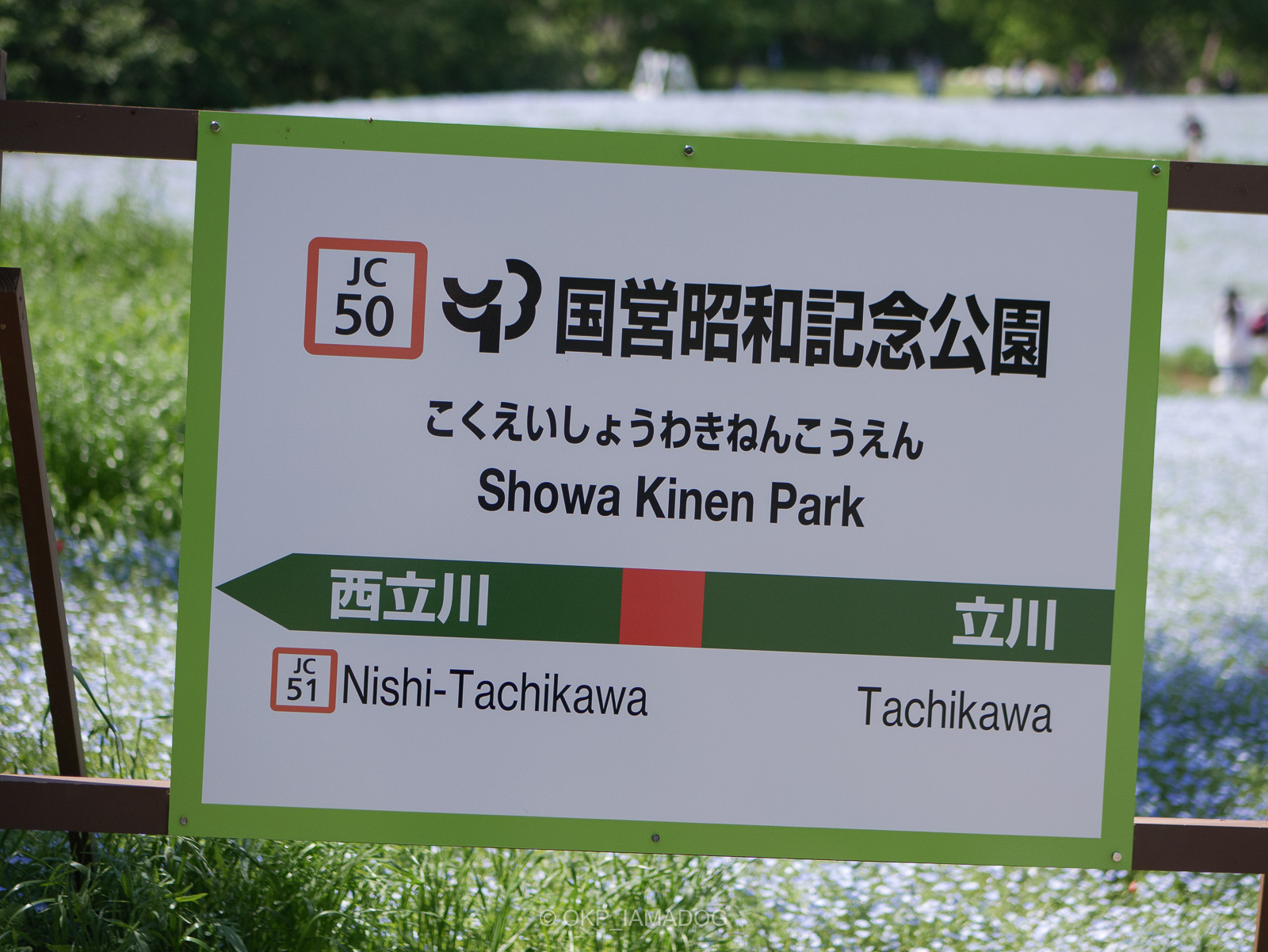 例年、昭和記念公園のネモフィラは園内西の「ハーブの丘」に植えられてることが多いのですが、今年は「開園40周年記念花畑」として園内で最も広い丘である「花の丘」(これまでポピーや、秋にはコスモスが植えられてきました)に180万本のネモフィラが植えられています。ゴールデンウィーク始め頃に見頃迎えていたようですが、まだまだ楽しめるようなので青空が出たタイミングで訪れました。
