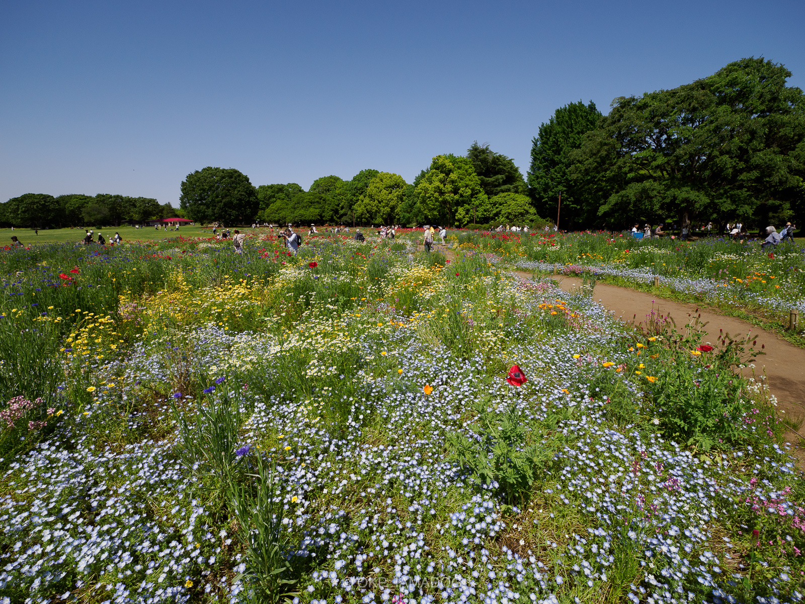 国営昭和記念公園の春の花の丘。ポピーも良かったですが、やはり青空の下で見る一面のネモフィラはいいものですね。来年以降も花の丘でネモフィラをやってくれると嬉しいですがどうでしょうね。