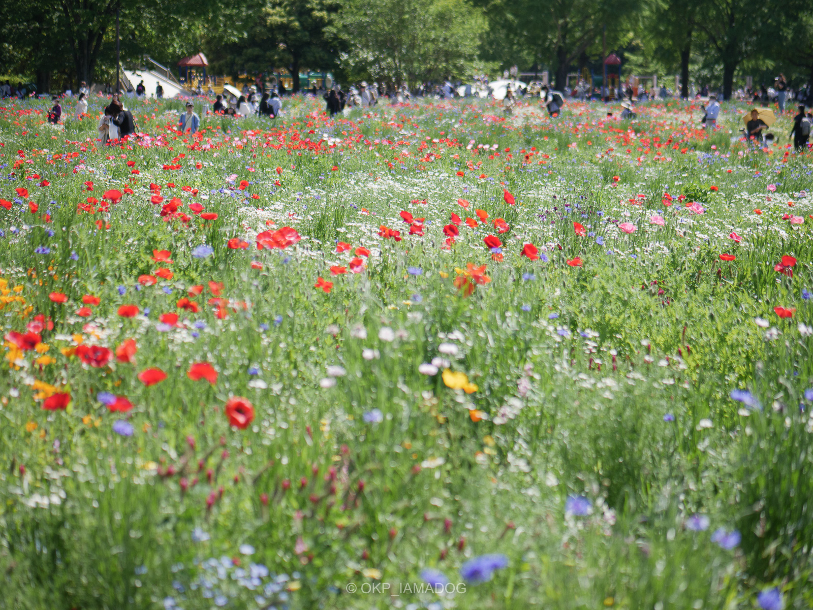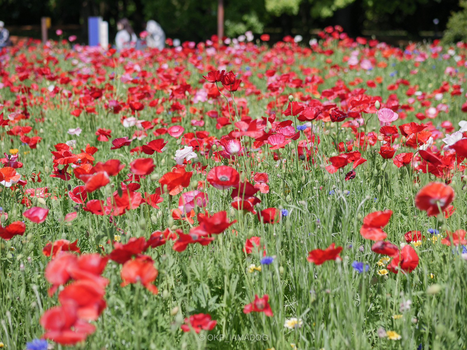 こちらは原っぱ南花畑のブーケガーデン。ネモフィラやシャーレポピーを始め、18品種20万本の様々な花が植えられたミックス花畑。こちらもなかなか見応えがあります。