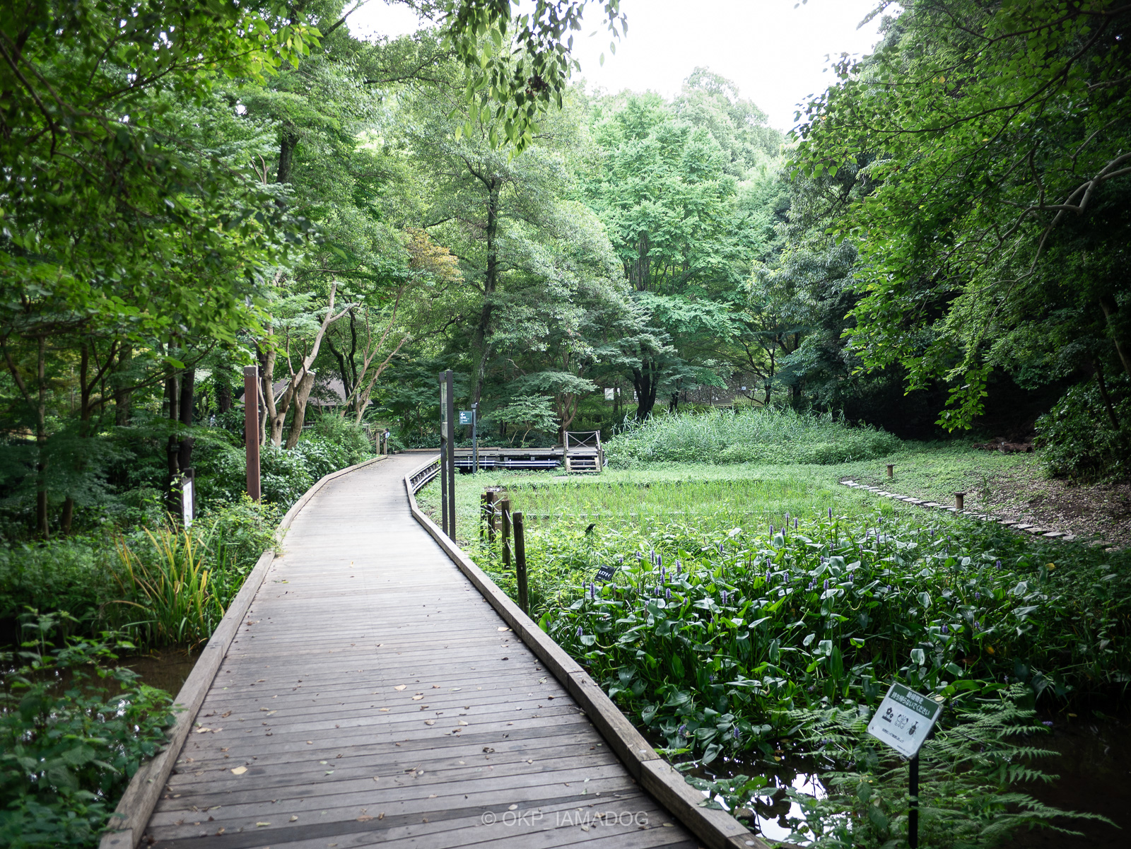 木道が整備された立派な湿地帯。足元には谷戸の湧水を流してると思われる小川が流れています。