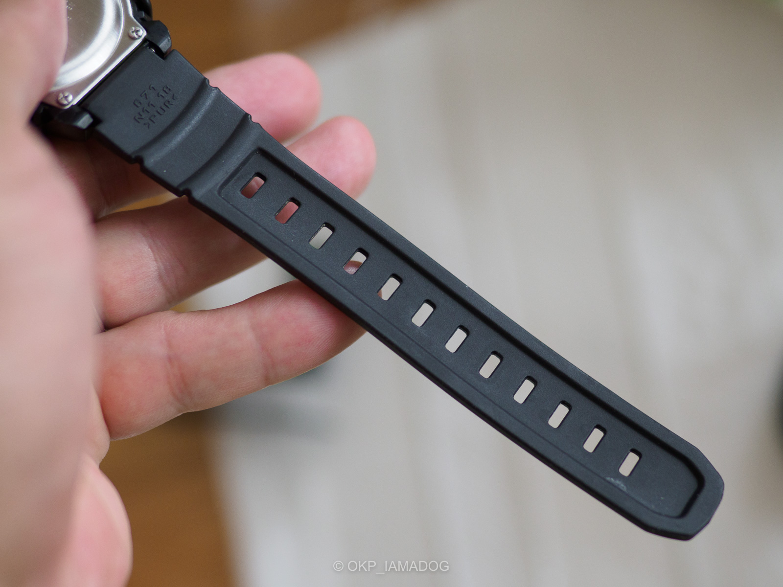 ……と、ここで気付いたのが、手首を経由して虫よけの影響を受けてしまった可能性。一応、手首に塗った虫よけは軽く拭いて乾かしてから付けるようにしていましたが、それでも影響が出てしまったのかも。バンドなら交換できるし、裏面はガラスぽいので傷さえ気を付ければいいかと思ってましたが、樹脂パーツでしたか……。