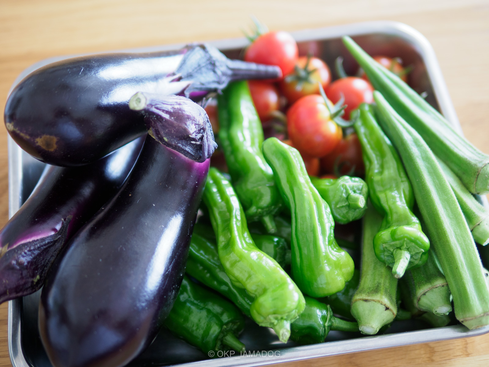 スーパーの普段の買い物の他にも、出掛けた際の道の駅とかサービスエリア、地元の物産館(府中市郷土の森観光物産館)などで野菜をつい買いがちな季節。色鮮やかな野菜、ついバットに並べてみたくなる。