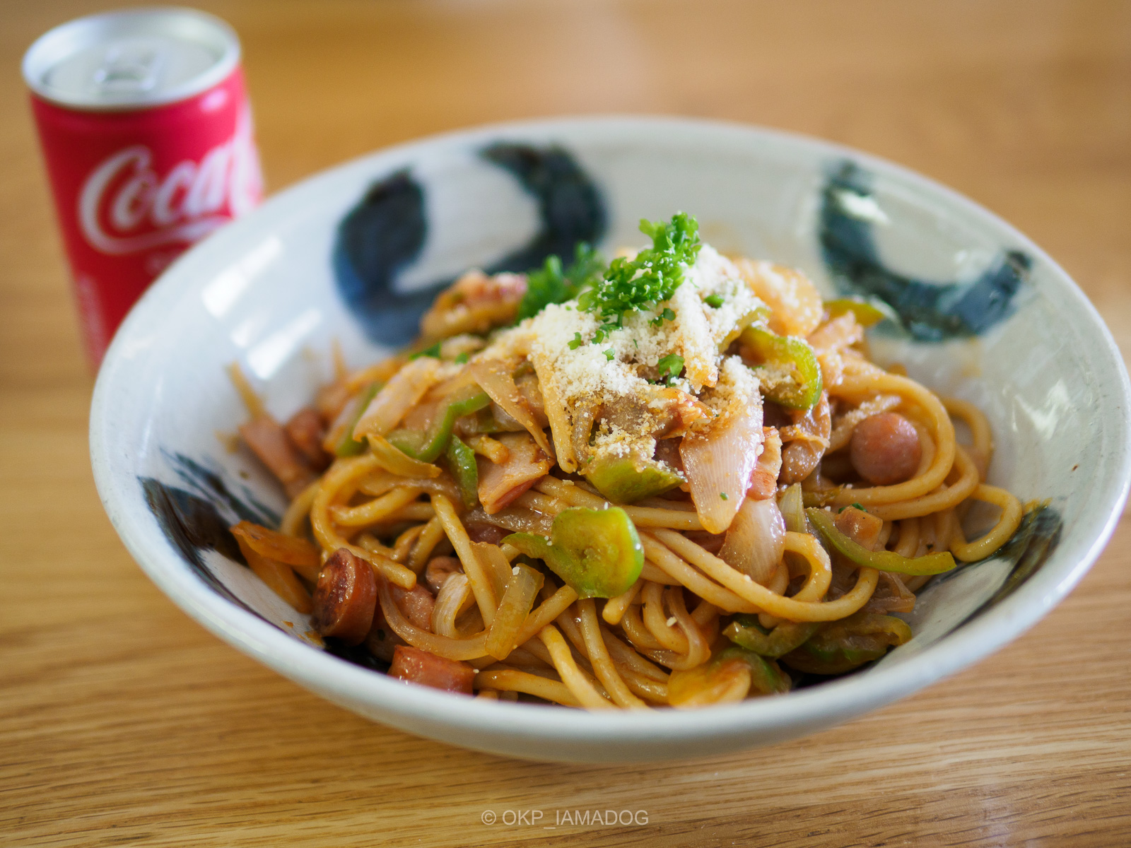 適当に余った野菜を刻んでナポリタン。生トマトを入れてケチャップ少なめで作るのもうまい。