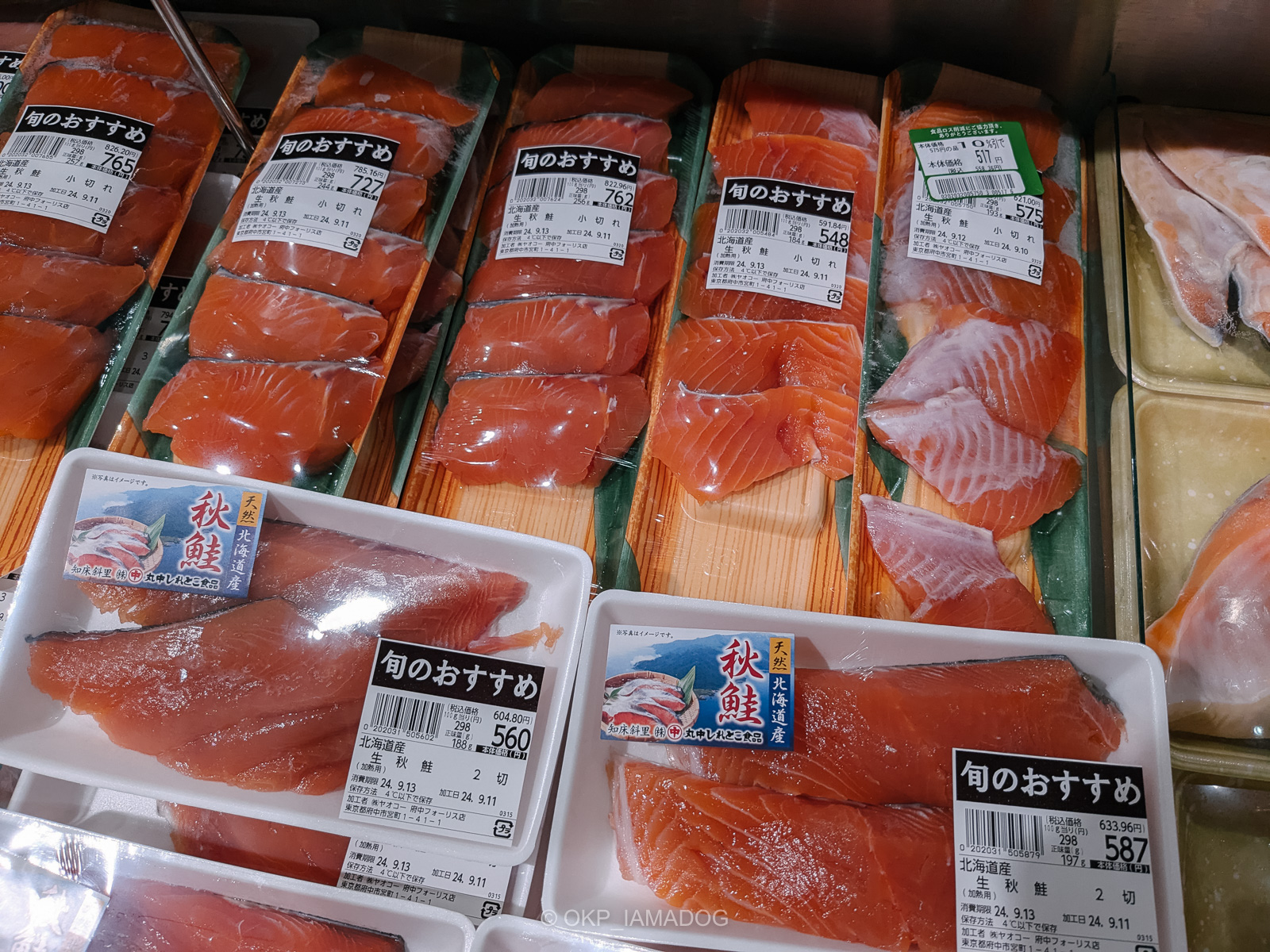 その後、グラム1280円まで上がったのを悲しく眺めていてからの昨日、いつものヤオコーにて980円からの20%OFF(要は見切り品)を発見。迷わず2パック購入しました。生筋子と同じく北海道産の生秋鮭も並んでいたのでゲット。こちらも見切り品があってラッキー。食品ロス削減には積極的に協力します。
