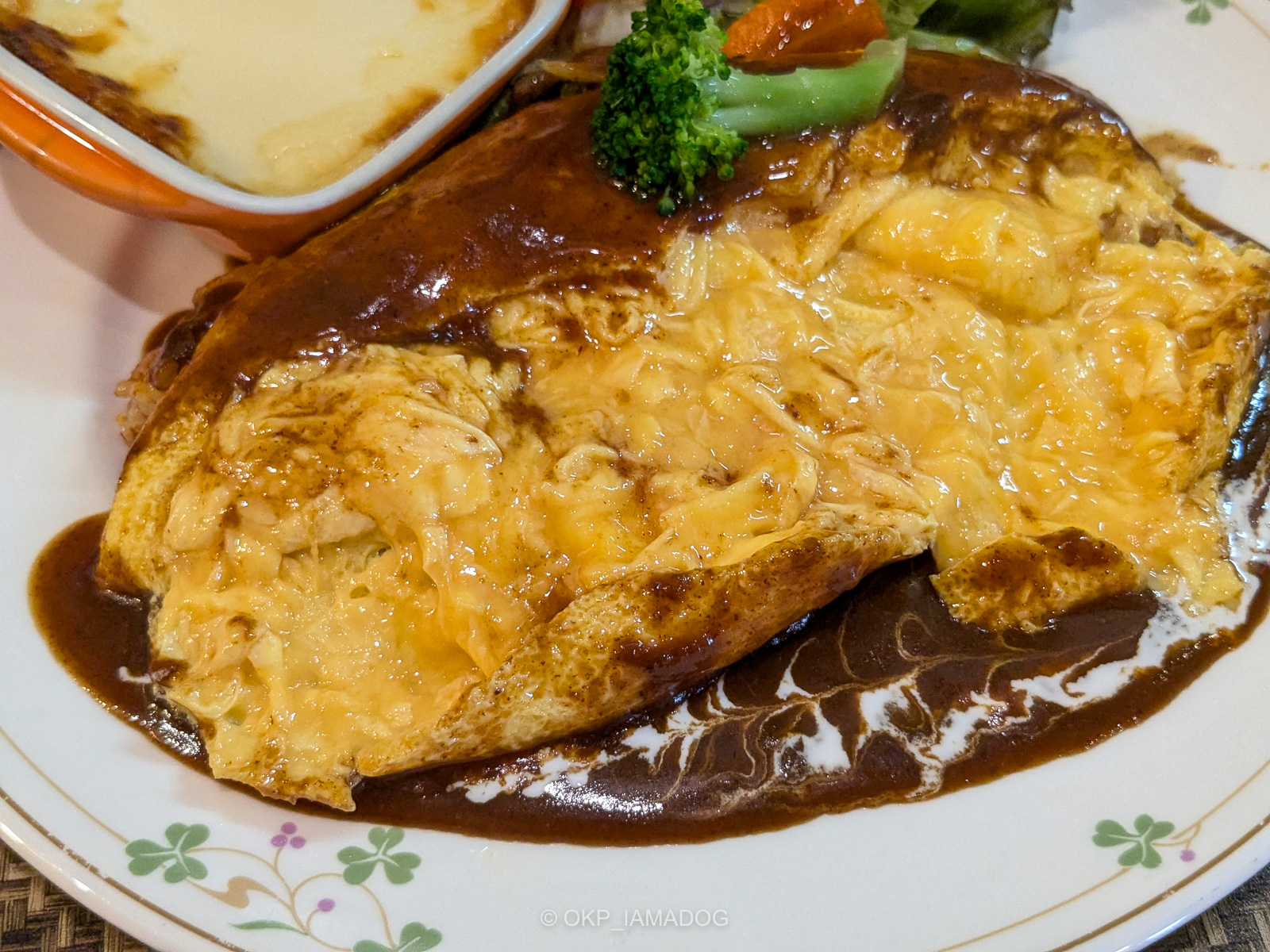 プレーンオムレツをオープン。中はふわとろ! デミグラスソースは本格的で、あとはうまいうまいと食べるのみ。グラタンも絶品のベシャメルソースにチーズたっぷり、思いの外に満腹になってしまいました。