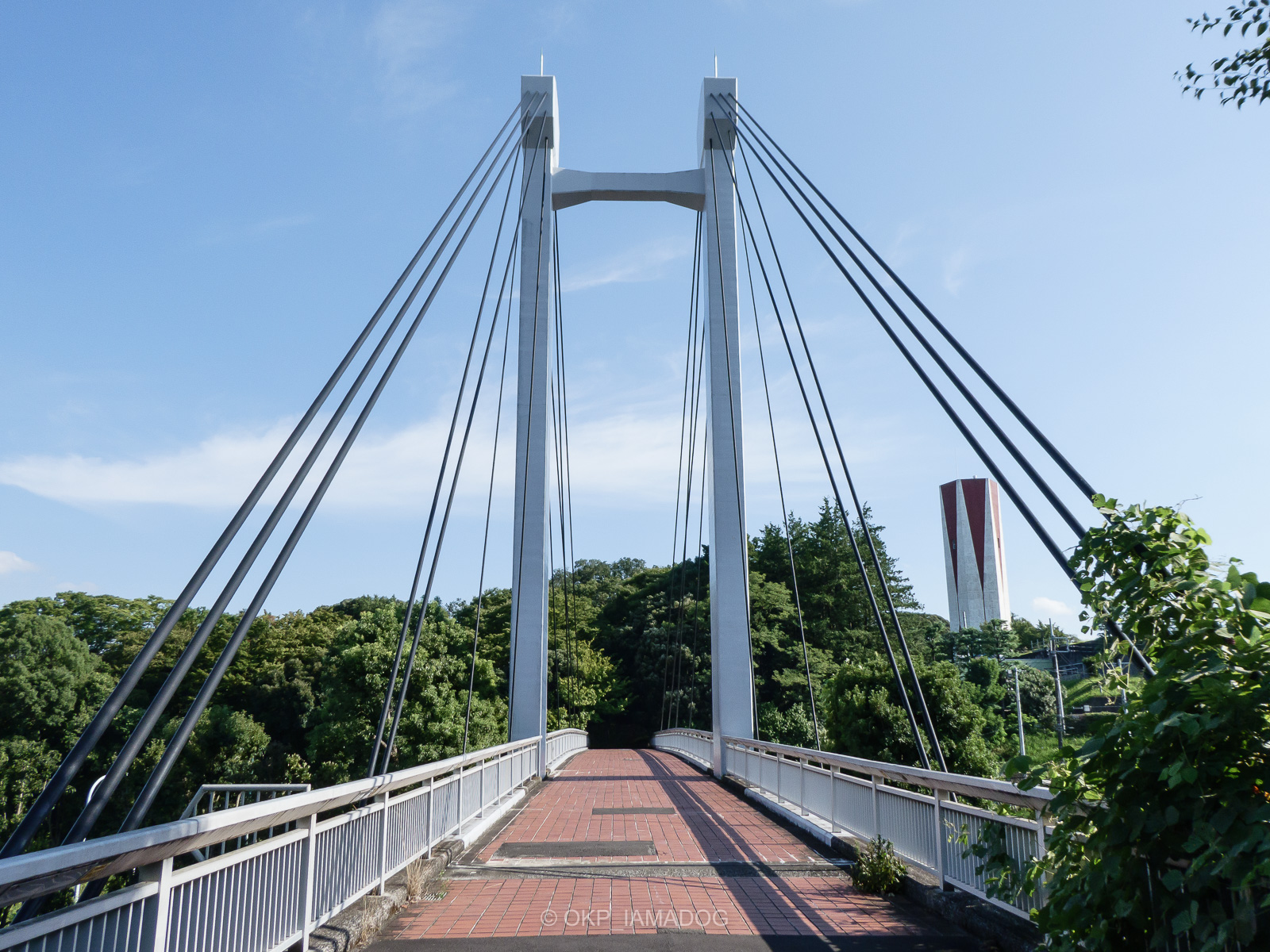 一本杉橋の隣の跨道橋、鶴之橋から見えた南野給水所の給水塔。