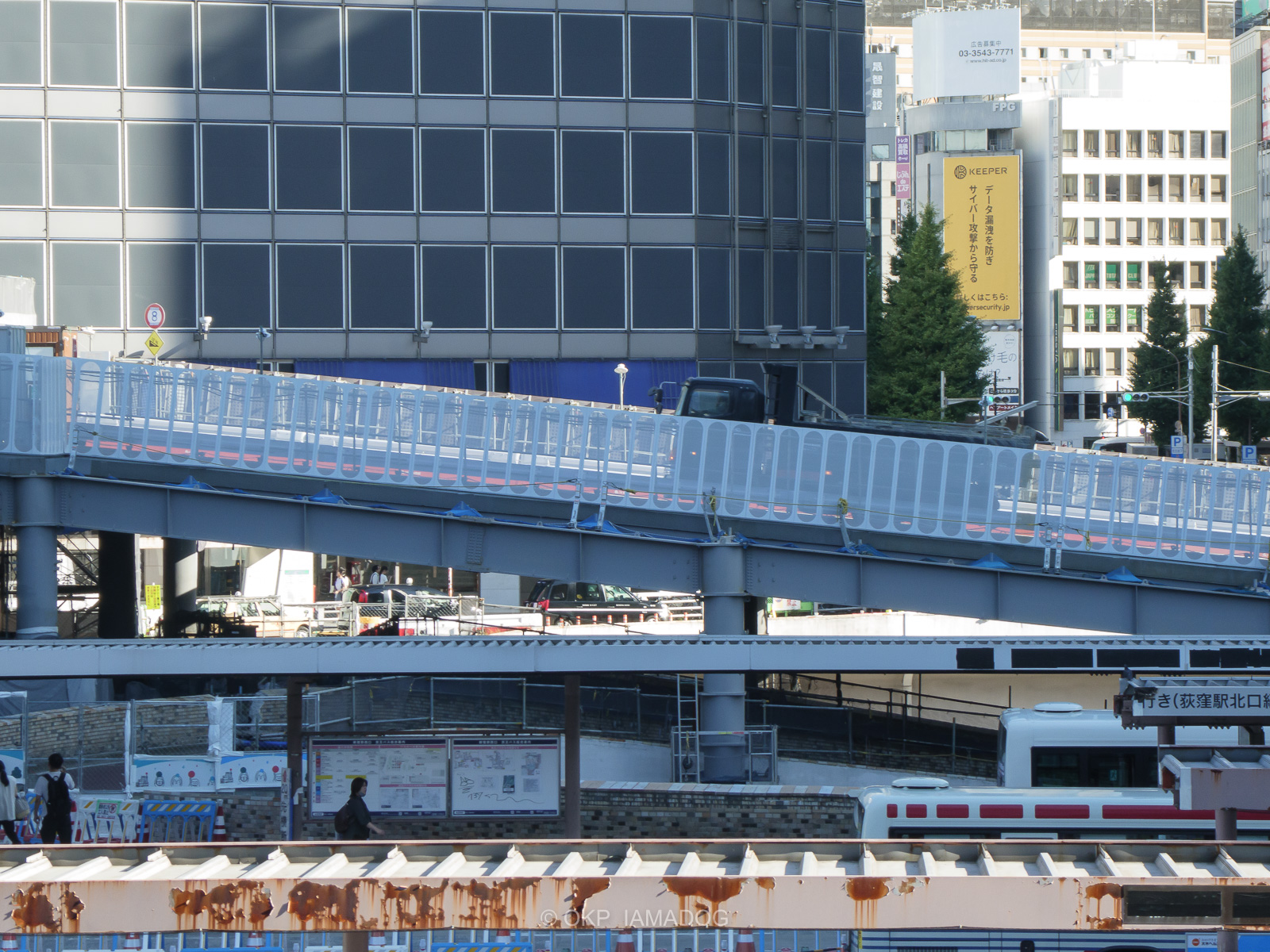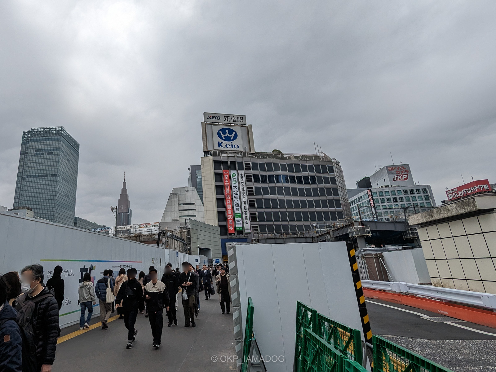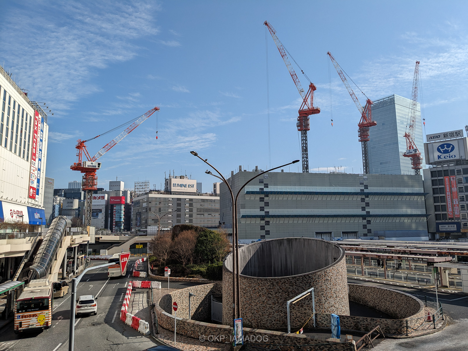 昨年、小田急百貨店の解体が一通り終わって仮囲いも外されたとこまでは地上からも確認していましたが、京王百貨店の隣のスペースがすっぽり空いて新宿駅のプラットホームが見えているのが不思議な感じ。