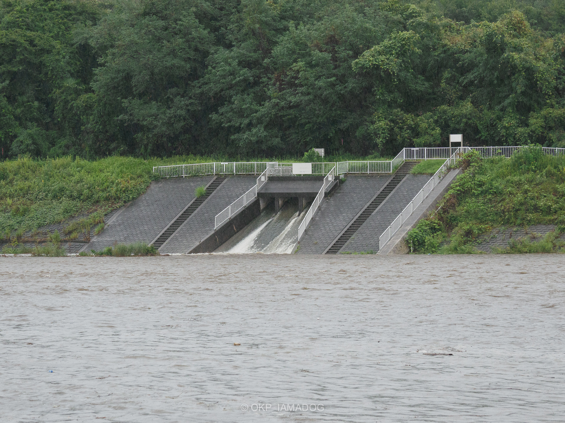 そして台風一過の翌日。今度は大丸用水堰の右岸側に来てみました。増水は前日夜には収まっていました。