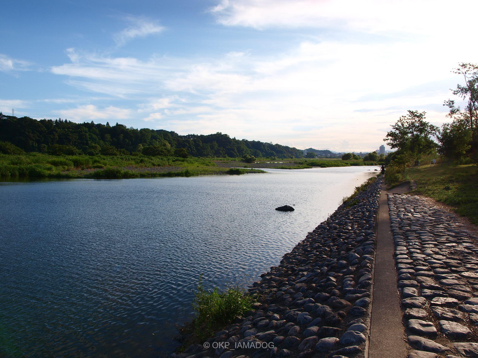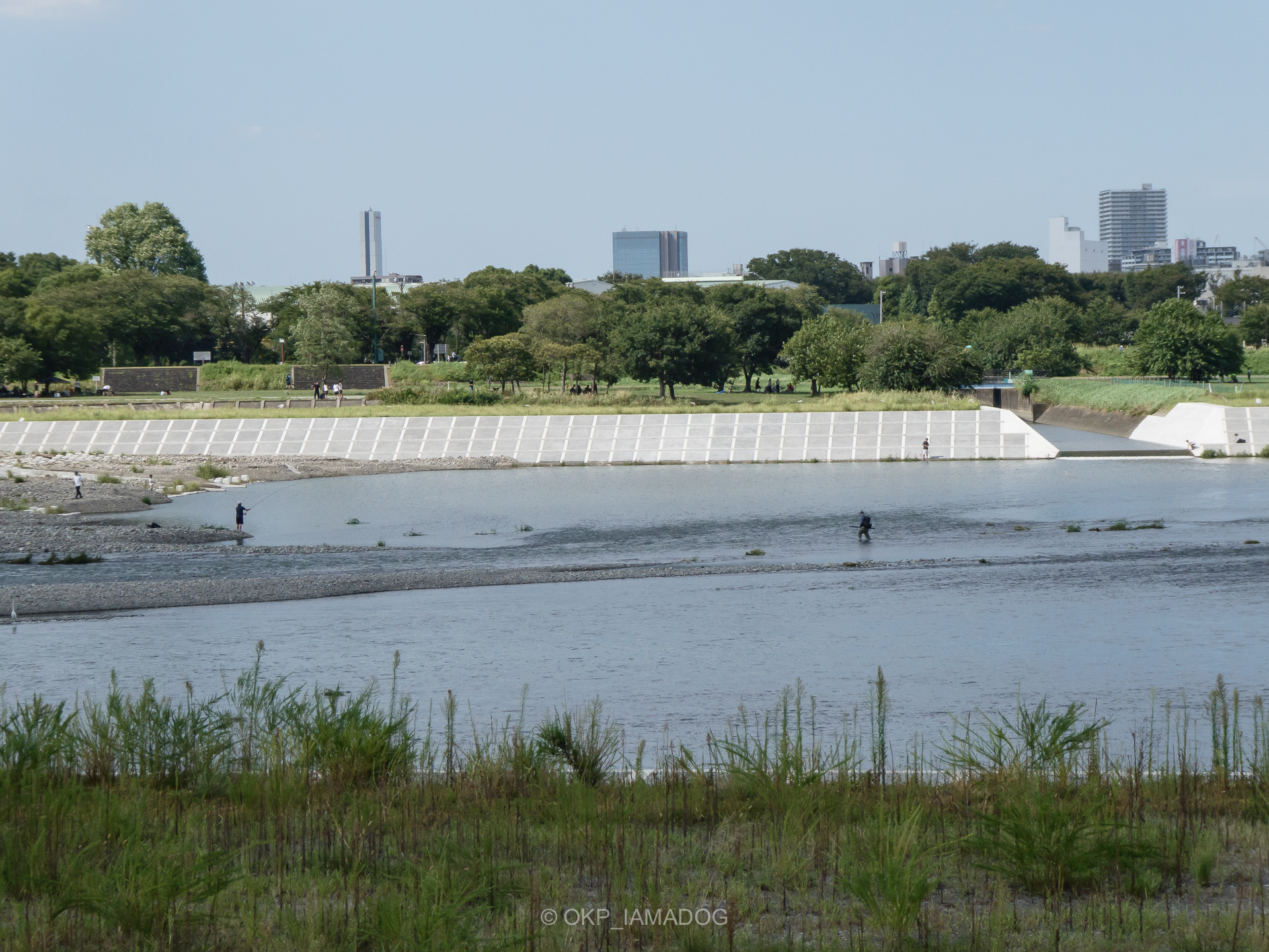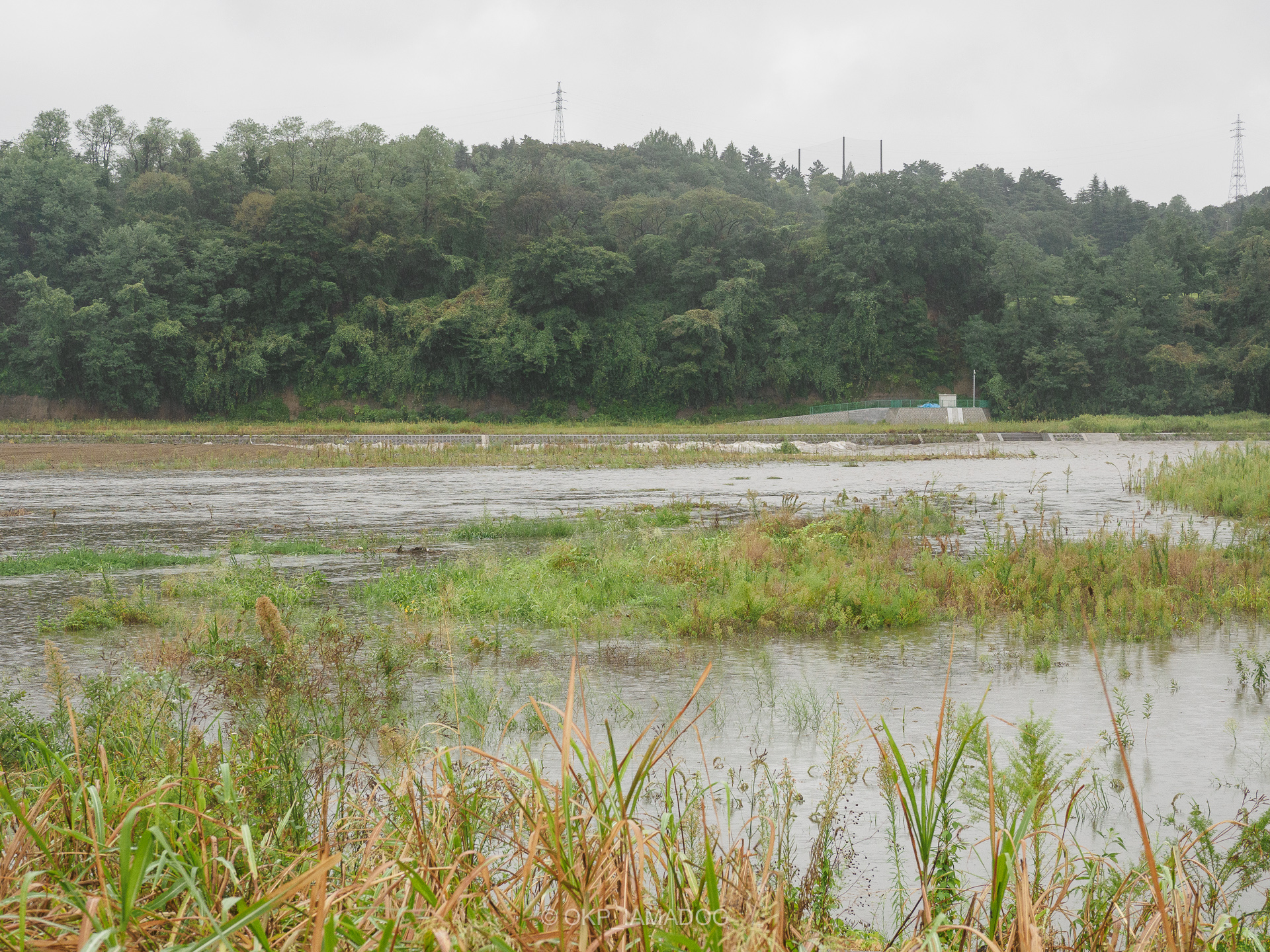 台風15号では東京多摩地区では大きな被害はなかったものの、多摩川の水位上昇により今年の5月の大雨以来、大丸用水堰(大丸床止)の左岸側まで多摩川の流れが広がっているのを確認しました。