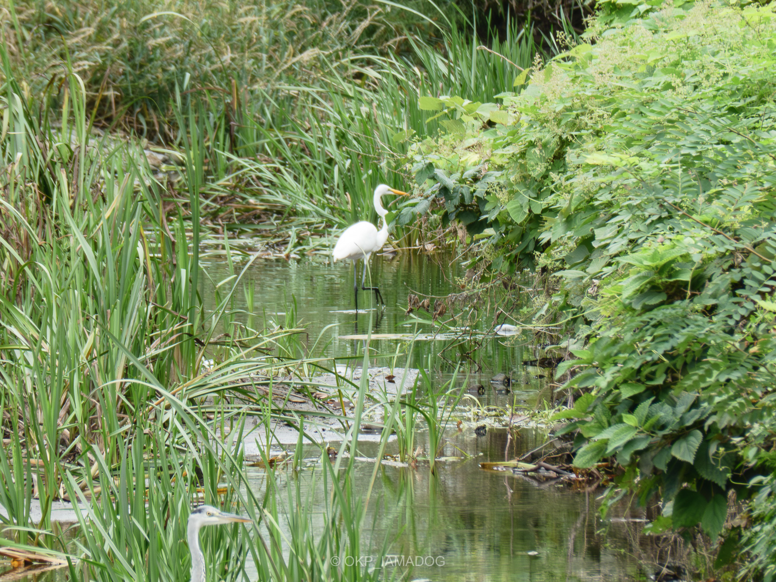 通水は終わってもまだ一部に水が残っているので、餌が取れるのかサギたちの姿をよく見ます。
