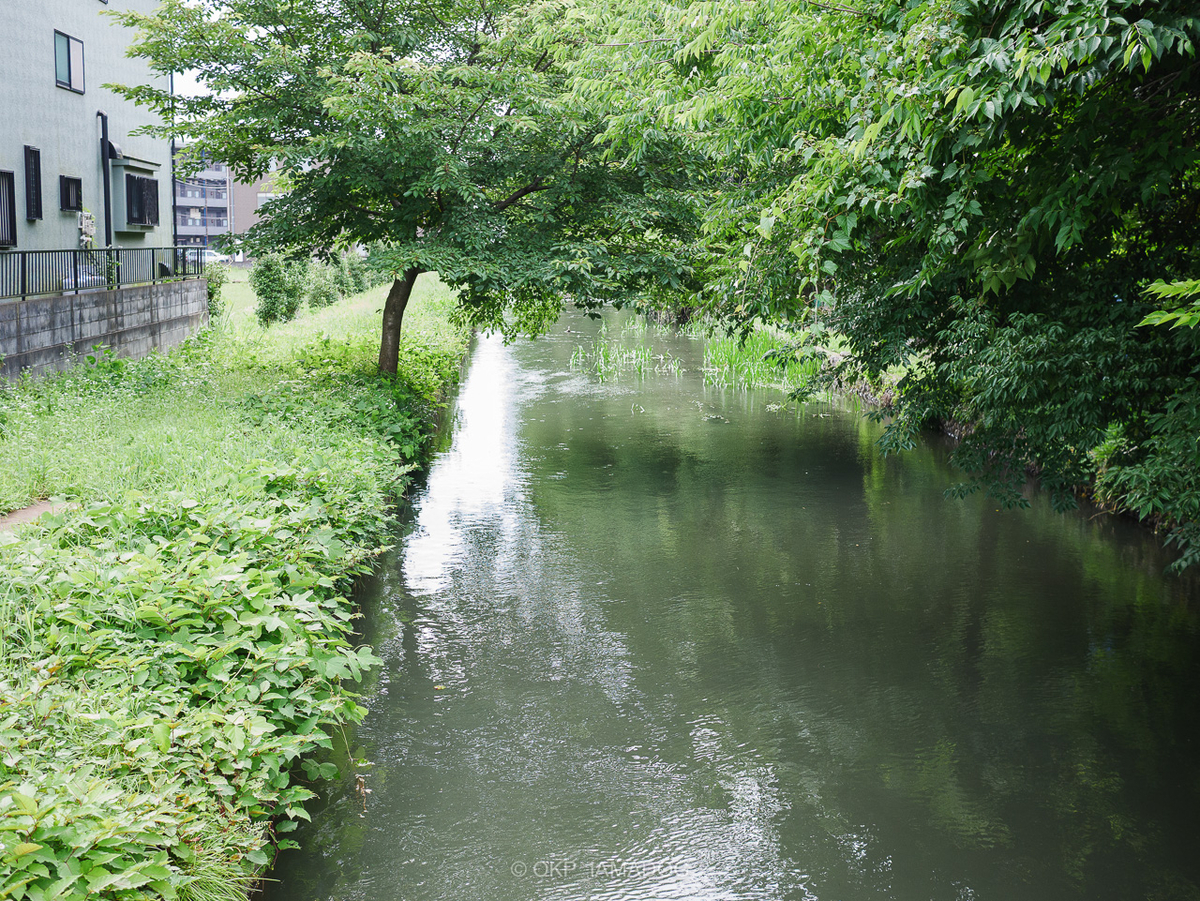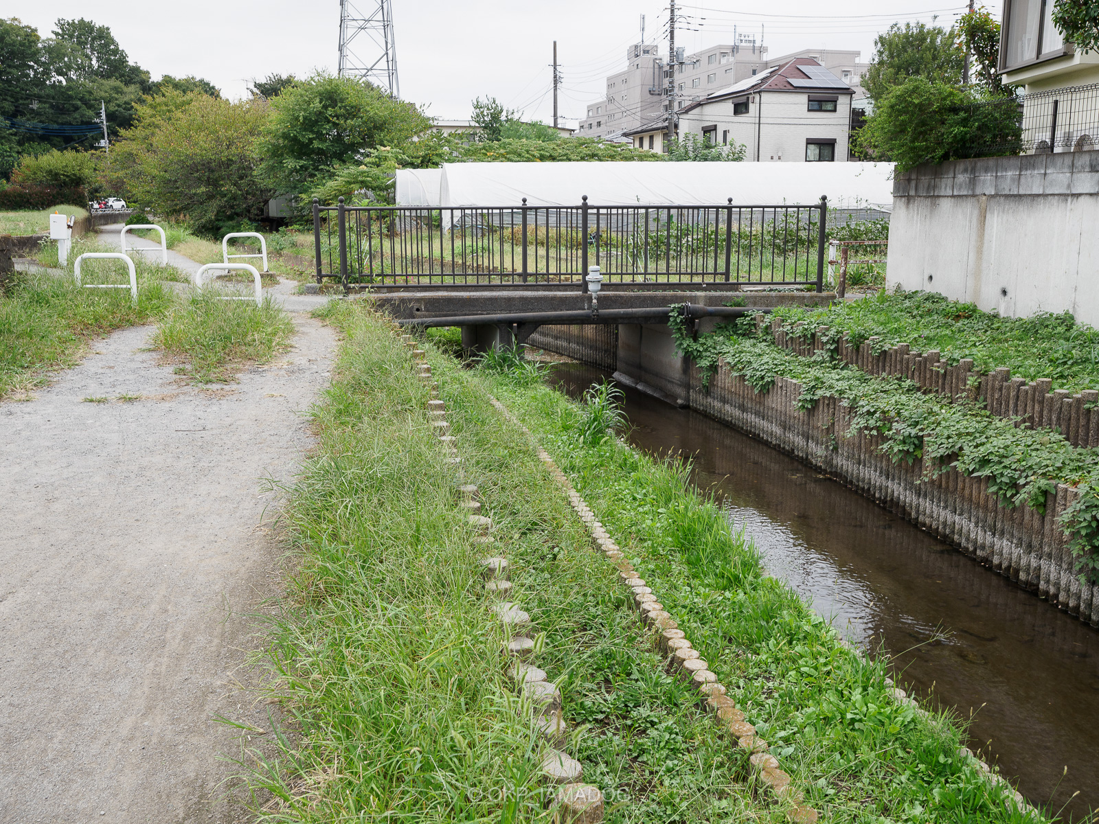 この周辺は水路が複数分岐している生産緑地なので確信はありませんが、南町かえで通り公園の通路が怪しい。