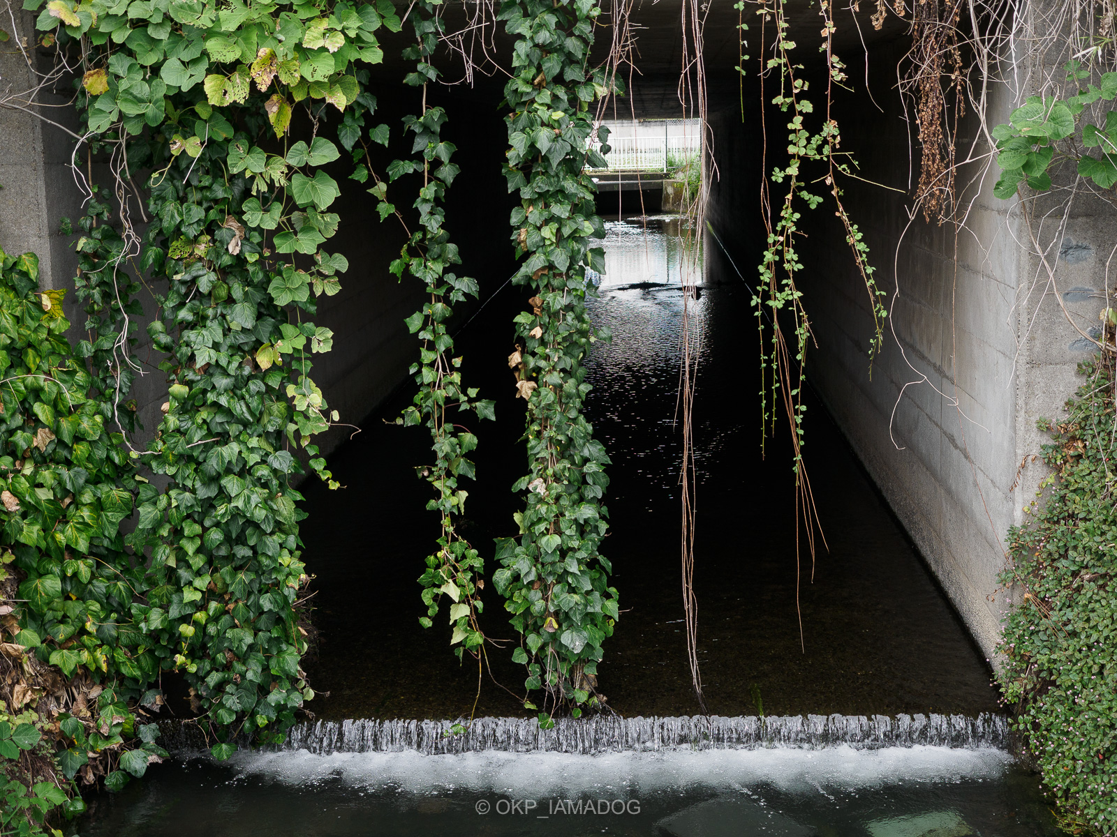 しょうぶ池から戻ってきた水が合流して一旦暗渠になります。