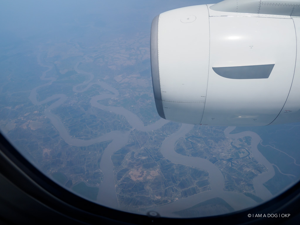 途中、強烈に入り乱れた川や巨大なダムが見えたのはバングラデシュの辺り?