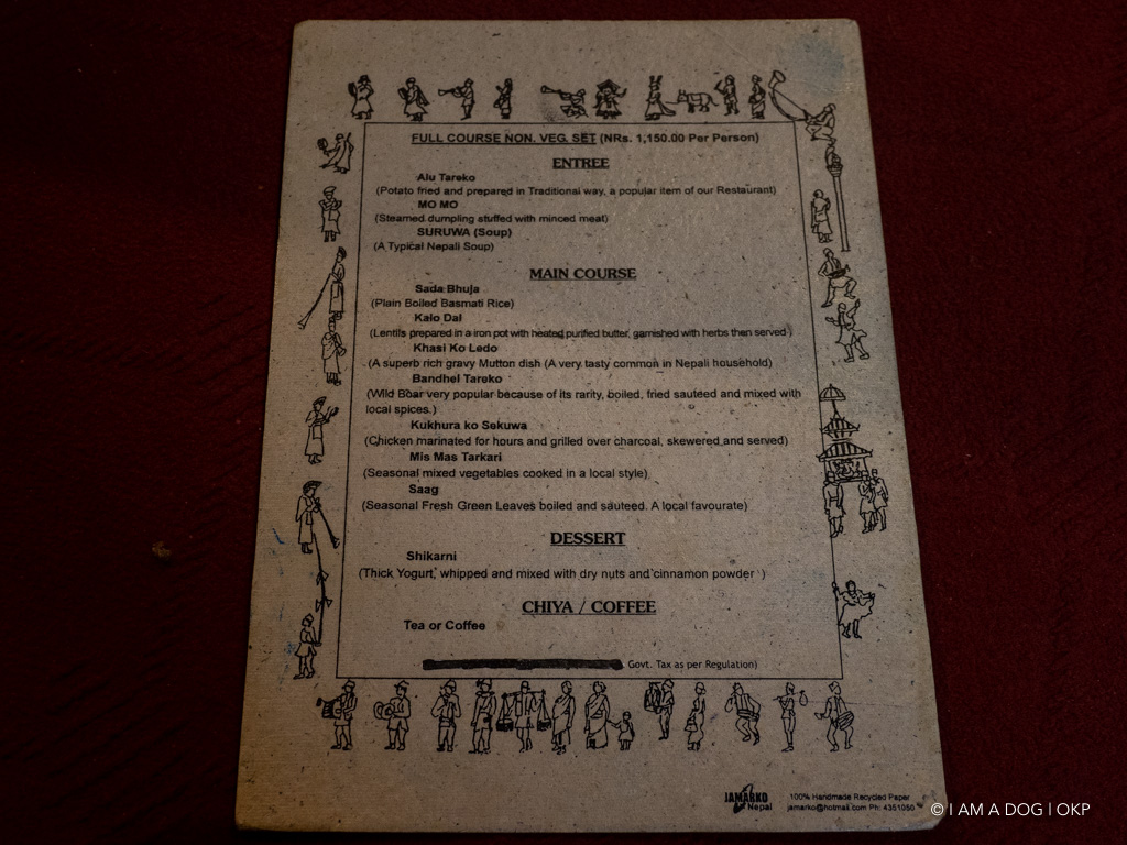 ネパール料理をひととおり味わうことができるコース(Rs1150)を注文。ネパールの料理にしてはかなりいい価格ですが、日本感覚からすればそれでも安いですね。