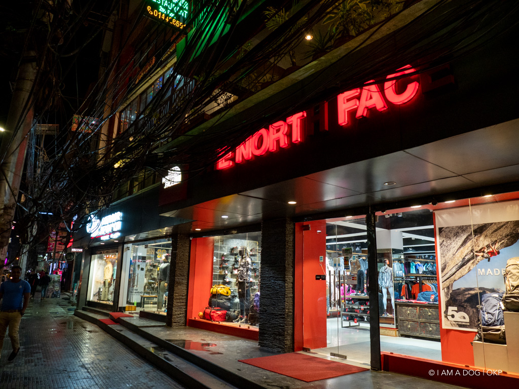 タメル地区はネパールツーリストの拠点になっている繁華街で、トレッキングが一大観光資源の国らしく世界有数のアウトドアショップが並ぶエリア(浅草と秋葉原と神田が合体したような?)。ブランド公式ストアから、見るからに偽物だらけの店まで1日2日ではではとても回りきれない数の店舗が集中しています。