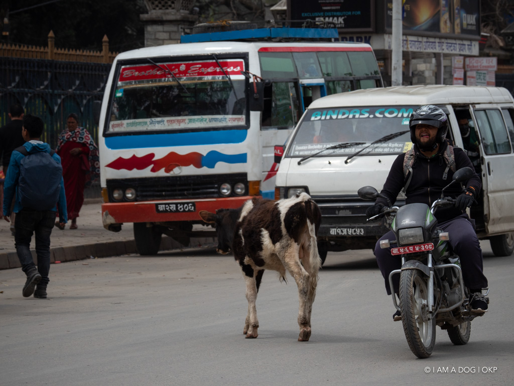 まさかの野良牛……。ネパールでは牛は聖なる動物なので乳が出なくなった牛を殺すこともできず、捨ててしまう人がいるらしい(とネパール人が言ってた)。